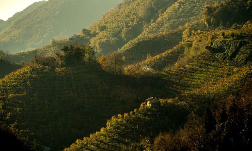 Nel Valdobbiadene DOCG, cuore collinare del Prosecco Superiore, il vino è una conseguenza diretta della geografia. Ci troviamo nel Veneto interno, tra le Prealpi trevigiane, in un territorio composto da dorsali ripide e frammentate, dove la viticoltura si misura quotidianamente con la pendenza, l’altitudine e la variabilità dei suoli. È qui che la Glera, vitigno autoctono alla base del Prosecco Superiore, trova una delle sue massime espressioni: varietà naturalmente dotata di acidità e finezza aromatica, capace di riflettere con precisione le condizioni ambientali in cui cresce.