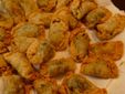 Ponete al centro un cucchiaio di ripieno, inumidite i bordi e chiudete a mezzaluna, sigillando con cura.