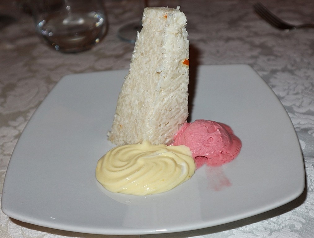 Il menù si è aperto con una torta di riso Carnaroli su crema di prescinsêua, rilettura di un classico ligure in cui il riso ha donato struttura e naturale cremosità, bilanciata dalla freschezza del latticino.