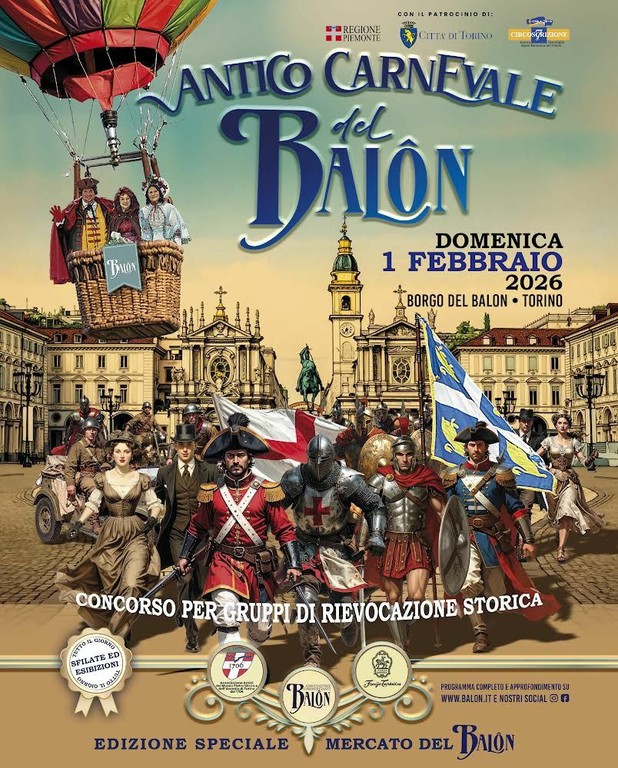 Un momento davvero unico nel panorama degli eventi di Carnevale perché si tratta di una vera e propria kermesse dedicata alle sfilate e alle esibizioni di 14 gruppi storici in rappresentanza di varie epoche della storia dell’umanità, un percorso che è ripreso dal 2018 con il ritorno dell’Antico Carnevale del Balon dopo alcuni decenni di assenza dal panorama delle manifestazioni torinesi.