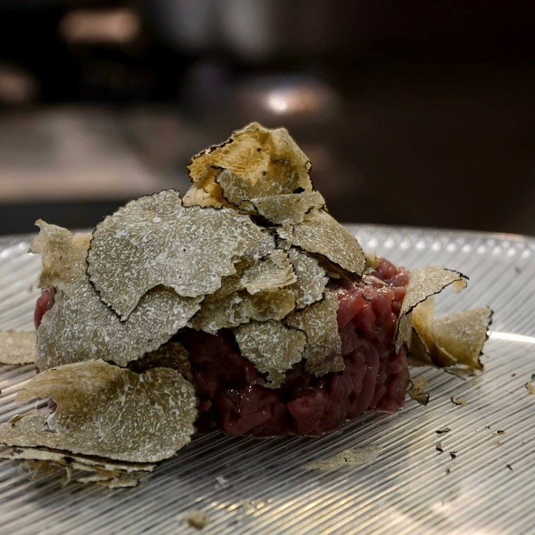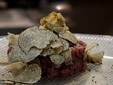 Tra i primi emergono scelte originali e ben calibrate, come gli agnolotti al cioccolato ripieni di cervo con spuma al Parmigiano e polvere di cavolo nero, o i tagliolini ai quaranta tuorli con burro al tartufo e tartufo nero locale. Nei secondi, la guancia di Fassona al Nebbiolo dialoga con proposte di mare come le mazzancolle del Mar Ligure su crema di patata dolce e zeste di limone candito.