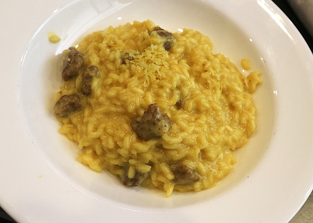 Sono seguiti due risotti di grande personalità: il Risotto alla Giubiana con salsiccia e zafferano, omaggio diretto alla tradizione,