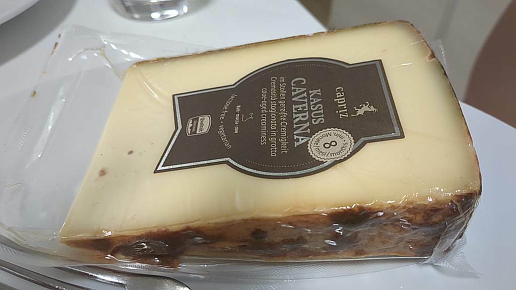 Il percorso si è aperto con il Graukäse, formaggio simbolo dell’Alto Adige più montano: una lavorazione a basso contenuto di grassi, ottenuta da latte scremato e caratterizzata da pasta friabile, acidità marcata e note aromatiche intense. Un prodotto che racconta di una cucina contadina capace di valorizzare ogni risorsa disponibile.