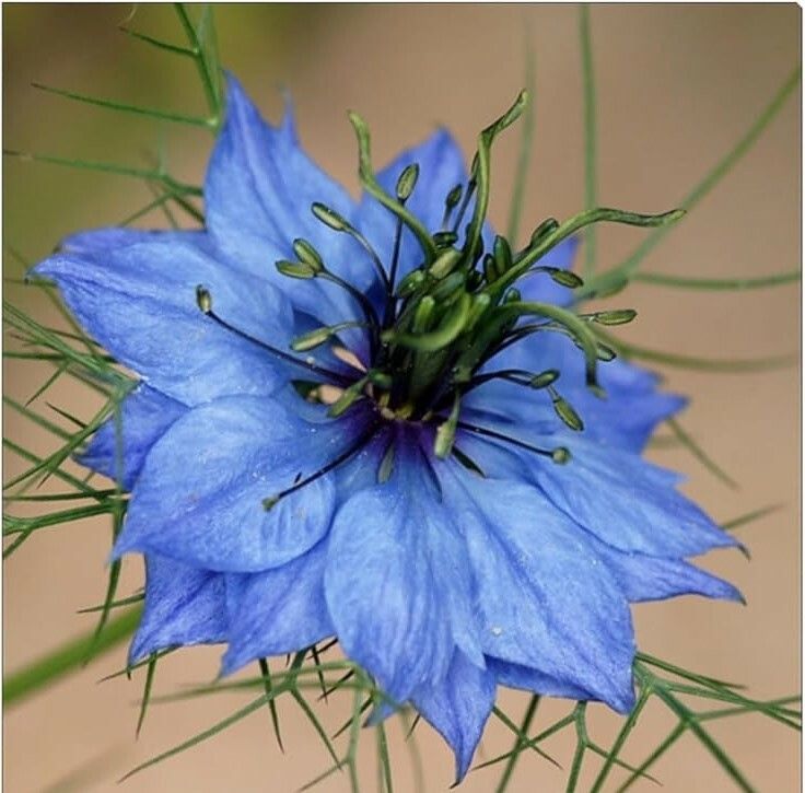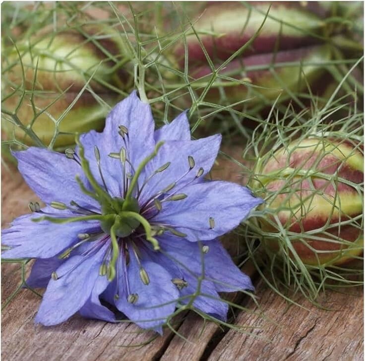 La Nigella è una pianta antica, radicata nel Mediterraneo e nel Vicino Oriente. Compare nei testi biblici come coltura distinta, lavorata con attenzione; entra nella medicina araba medievale come pianta di valore; attraversa i giardini europei tra Rinascimento ed età moderna per la grazia dei suoi fiori e la struttura quasi scultorea dei baccelli. Eppure, lungo questo percorso, il fiore non diventa mai alimento. Viene osservato, descritto, coltivato per ornamento. Non cucinato. Il nome inglese "love-in-a-mist" restituisce bene questa natura sospesa. Il fiore, avvolto da un intreccio di foglie sottili, è stato associato a un amore discreto, a un sentimento non dichiarato. Nel linguaggio floreale ottocentesco rappresenta eleganza e riserbo. Non cerca centralità, ma non è nemmeno marginale: occupa uno spazio intermedio, silenzioso ma riconoscibile.