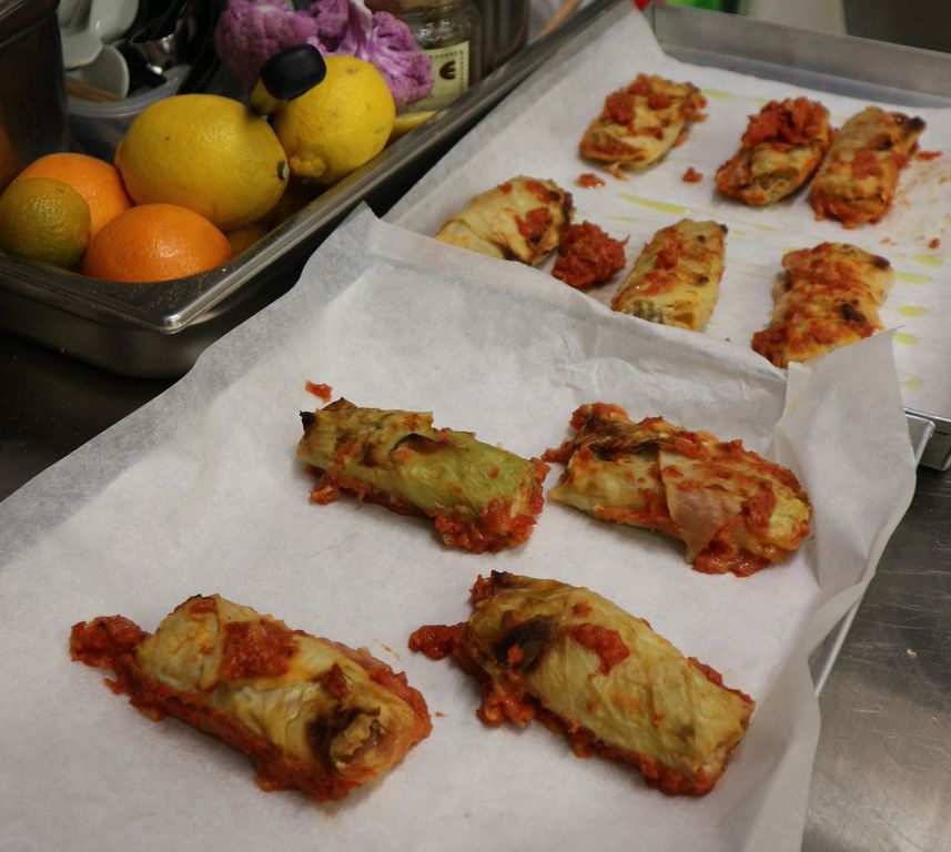 Gli involtini, dopo la preparazione a freddo, vengono poi cucinati o in padella o al forno condite con un semplice sugo di pomodoro, ricoperti formaggio grana. Trattandosi di prodotti già cucinati non richiedono una lunga cottura, sono sempre molto graditi anche ai bambini e sono il piatto che rappresenta forse la meglio l’inverno.