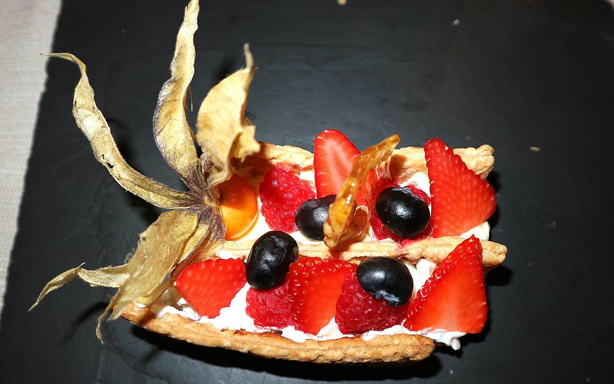 In chiusura, un millefoglie con crema aromatizzata al riso, mascarpone e frutti rossi, a dimostrazione della versatilità del Carnaroli, capace di accompagnare l’intero percorso fino al dessert.