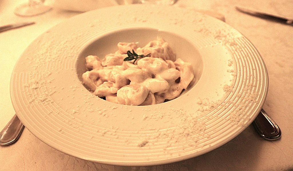 Primo: tortellini con la panna