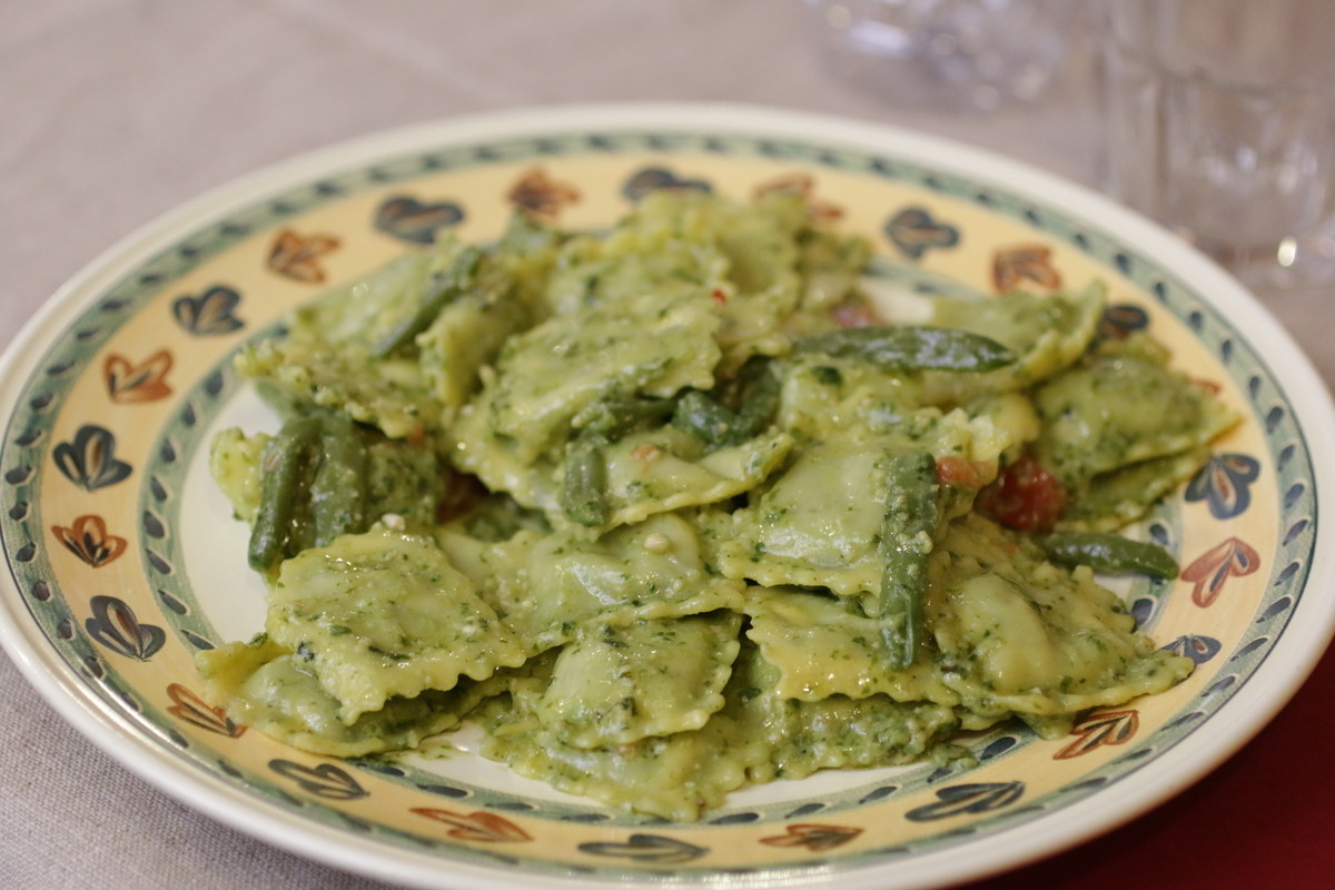Ravioli di borragine e trofie al pesto