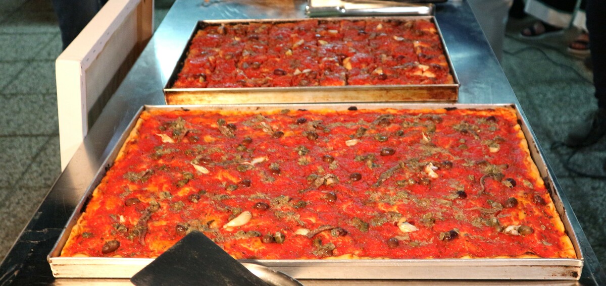 Sardenaira, focaccia con pomodoro, acciughe, capperi e olive