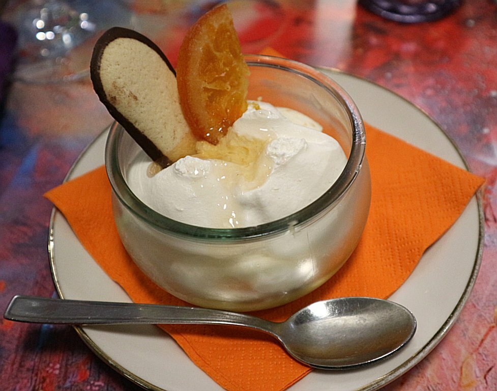 In chiusura, un semifreddo agli agrumi, coerente nella scelta di pulire il palato e concludere su note luminose e aromatiche.