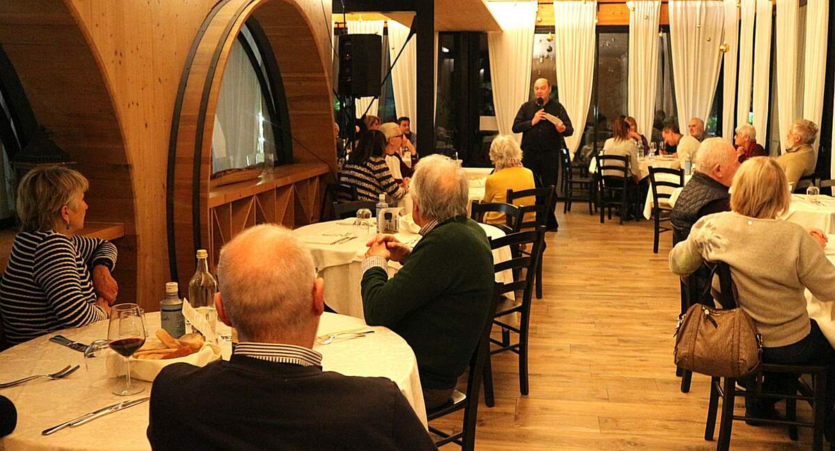 La serata è stata condotta dal giornalista Claudio Porchia, curatore della rassegna gastronomica del Villaggio dei Fiori, affiancato da Antonio Galante, sindaco di Cosio d’Arroscia e anima del ristorante Cadò. Con competenza e ironia Antonio ha guidato il pubblico tra ricette, parole di dialetto e ricordi personali legati alla cucina di casa, evocando il patrimonio gastronomico delle vallate alpine.