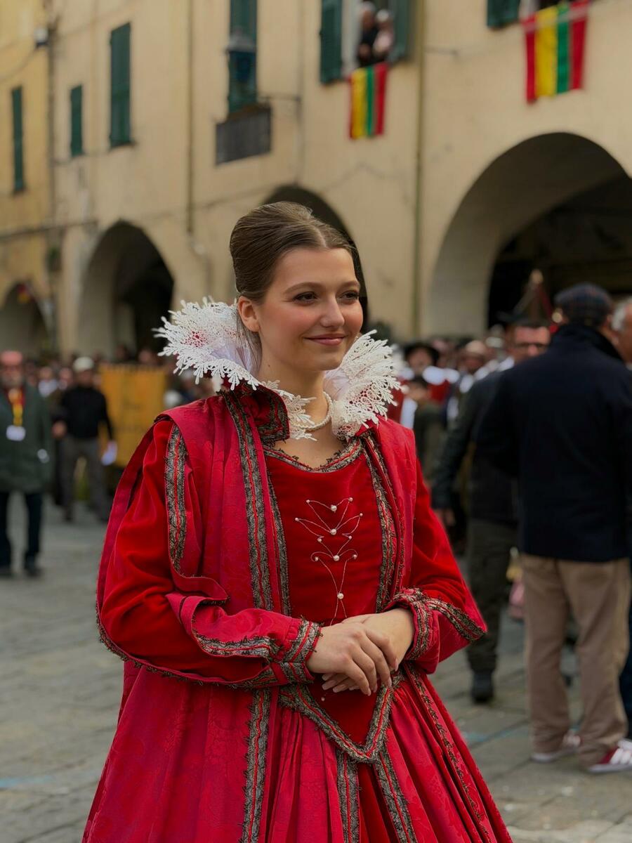 Per la giovane artista, tornare nei luoghi della sua infanzia è stato un tuffo nel passato: “Partecipare è stata un’emozione immensa”, ha dichiarato Nicla. “Sono cresciuta tra i carruggi di Taggia e immergermi nell’anima più antica del paese mi ha fatto sentire principessa per un giorno. Ricordo ancora quando, da piccolina, sfilai con uno dei rioni e vincemmo! Amo le rievocazioni storiche; spesso cammino per Taggia, osservo i palazzi d'epoca e viaggio con la mente immaginando la vita di secoli fa.”