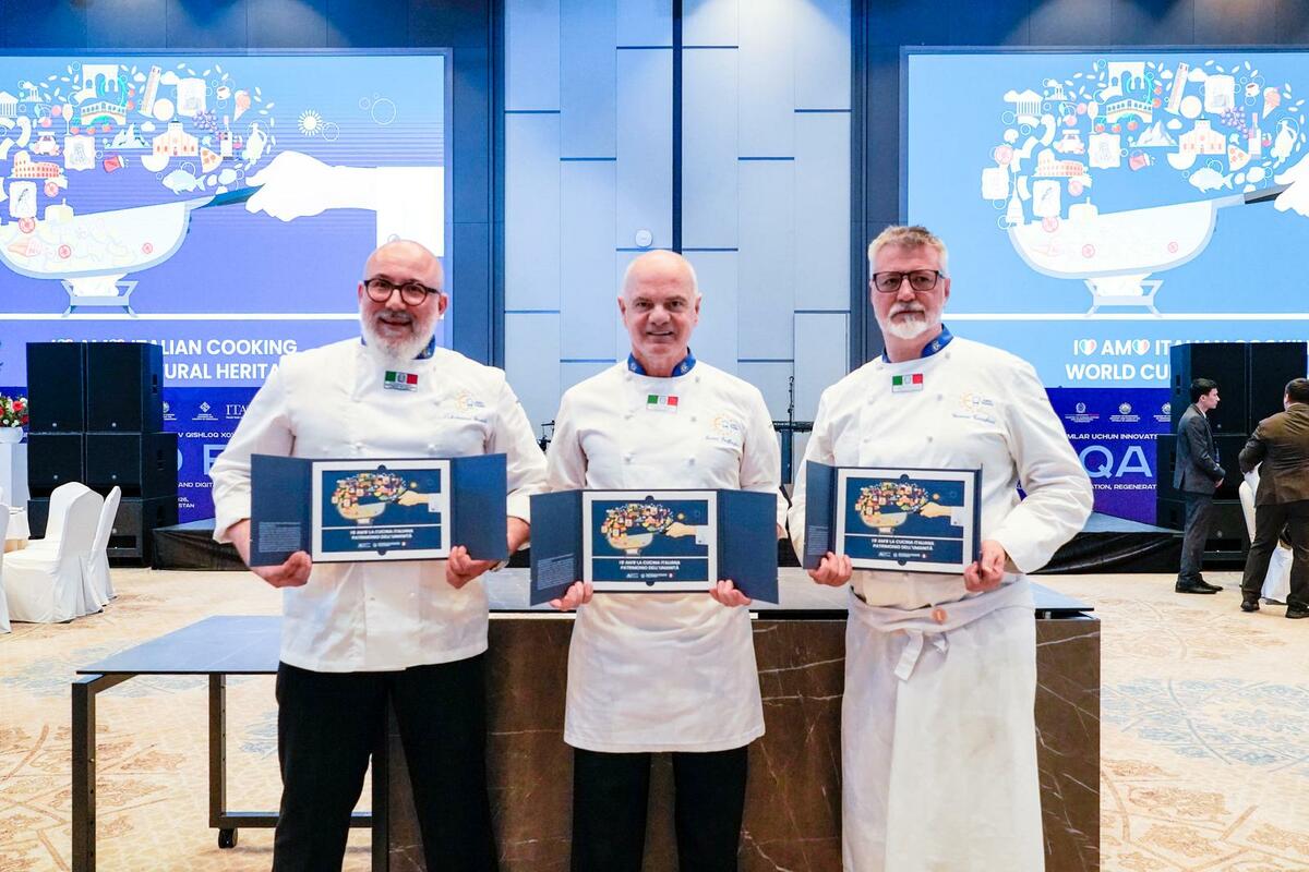 Grande partecipazione e unanimi consensi per l’iniziativa dedicata alla promozione della cucina italiana che si è svolta in Uzbekistan, alla presenza del Ministro dell’Agricoltura Francesco Lollobrigida e del presidente di Euro-Toques Italia, lo chef Enrico Derflingher. Oltre 300 partecipanti hanno preso parte all’evento, che si è concluso tra gli applausi, confermando il forte interesse internazionale per il patrimonio gastronomico italiano.