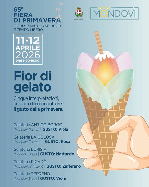 A Mondovì la primavera non si guarda soltanto: si assapora. Nel weekend dell’11 e 12 aprile, in occasione della 65ª Fiera di Primavera, il fiore diventa ingrediente e ispirazione grazie a “Fior di gelato”, un progetto che unisce creatività artigianale e cultura del gusto. Cinque gelaterie della città hanno raccolto la sfida: trasformare i fiori in gelato, dando vita a interpretazioni originali che raccontano la stagione più profumata dell’anno attraverso consistenze, colori e aromi inediti.