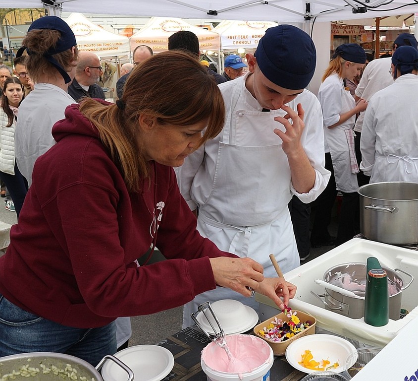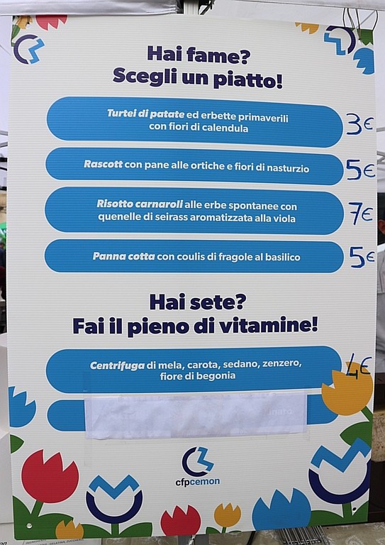 Mentre i visitatori si muovevano tra gli stand, i fiori continuavano a vivere nei piatti preparati dai ragazzi del CFP Cemon. Sotto la guida dei dirigenti dell’istituto e degli chef Andrea Basso e Paolo Pavarino, i giovani allievi hanno deliziato il pubblico con un menù floreale di alto livello: