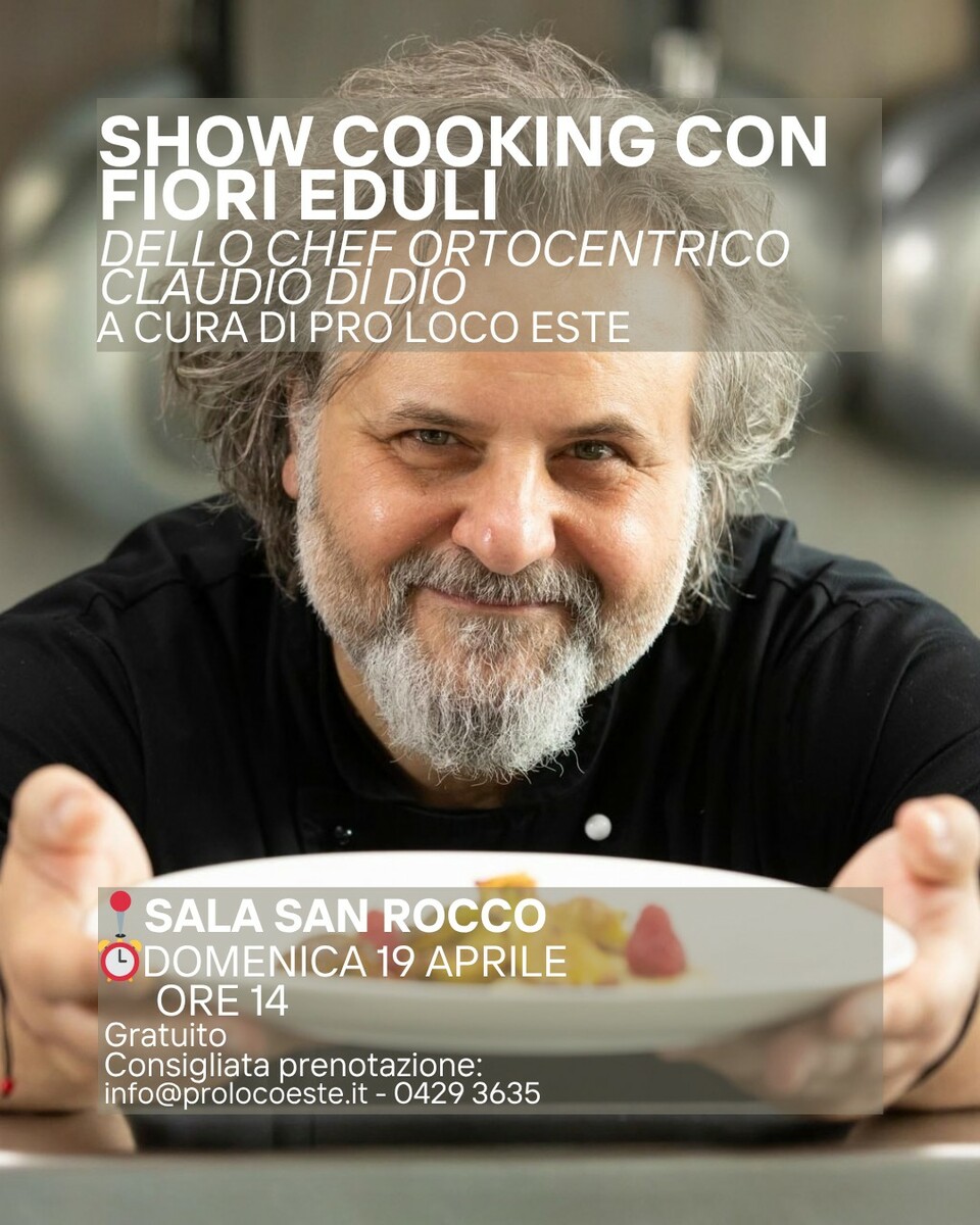 Il pomeriggio vedrà protagonista la dimensione più dinamica e creativa della kermesse: lo show cooking dello chef "ortocentrico" Claudio Di Dio. Attraverso la sua tecnica magistrale, lo chef mostrerà come erbe e petali possano essere integrati nella cucina quotidiana con consapevolezza. Anche in questo caso, la qualità della materia prima sarà garantita dall'azienda veneziana Metti un Fiore, che porterà a Este il meglio della sua produzione dedicata all'alta ristorazione e agli appassionati di cucina botanica.