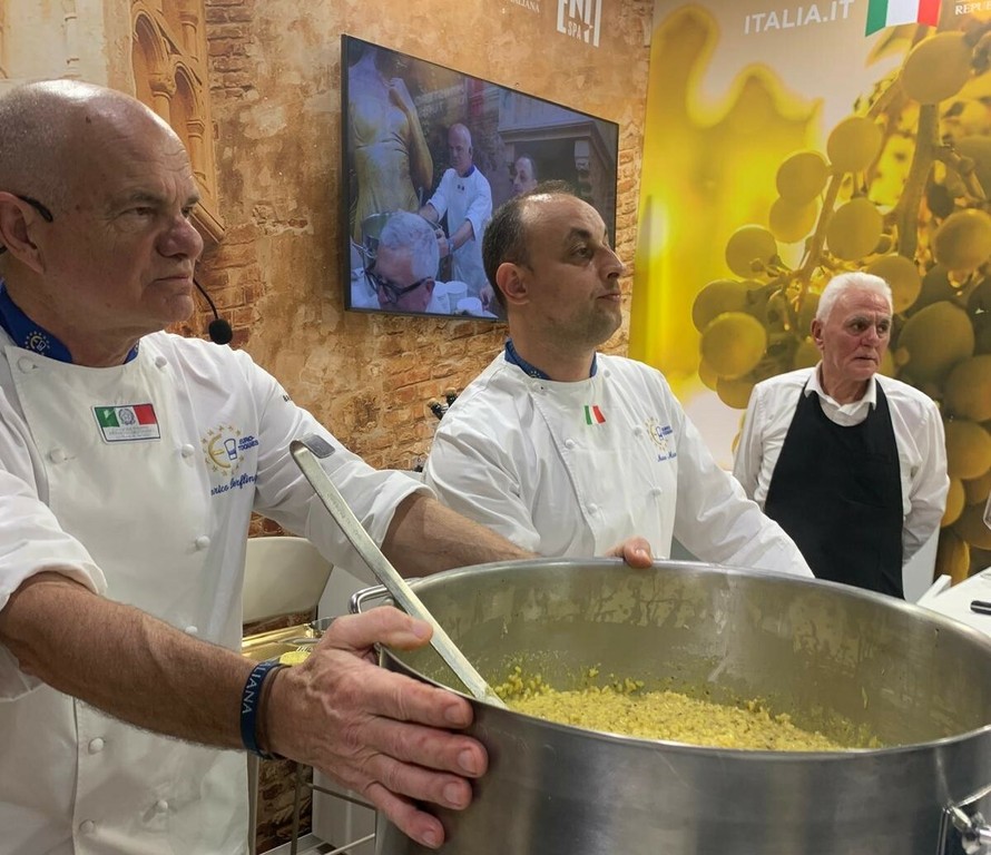 Il cuore dell’evento è stato il celebre Risotto “Re Carlo”, firma prestigiosa dello Chef Enrico Derflingher. Oltre 100 risotti sono stati preparati a vista, con il supporto degli chef Marco Marras e Fabrizio Mainetti, utilizzando una selezione delle migliori eccellenze italiane fornite dai partner storici dell'Associazione: il Riso Riserva San Massimo, l’Olio Gradassi, lo Zafferano Arkania, il prezioso tocco di Urbani Tartufi, il Parmigiano Reggiano Boni, il Gorgonzola Bassi e le bollicine di Franciacorta Bellavista.