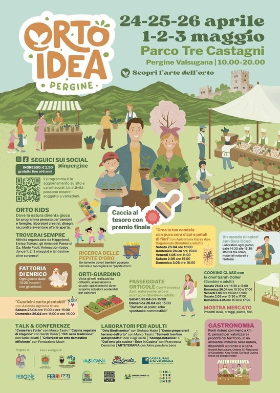 Ci sono luoghi che si scelgono. E altri che si scoprono quasi per caso, salvo poi fermarsi più a lungo del previsto. Pergine Valsugana appartiene a questa seconda categoria: posizione strategica, ritmo rilassato e una capacità naturale di sorprendere. A pochi minuti da Trento e Levico Terme, e a breve distanza da Bolzano e Verona, Pergine diventa nel 2026 una tappa obbligata grazie a ORTOidea, il primo festival dedicato all’orto, alla sostenibilità e alla cultura del verde.
